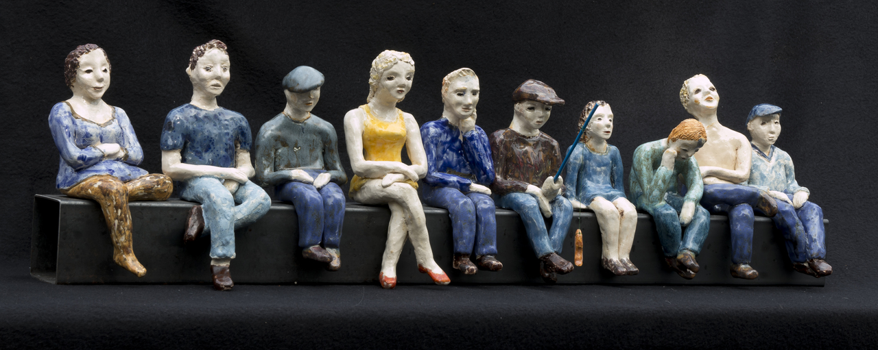 mensfiguren op ijzeren balk