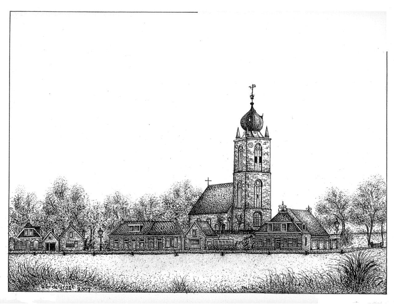 Gezicht op Deinum De originele tekening is in het bezit van het Westfries Museum. Art prints, in een genummerde oplage van 25 exemplaren, zijn te koop.