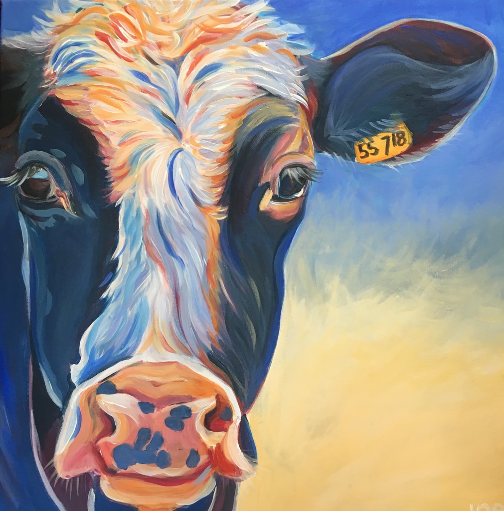 Blauw Acryl Blue Koe Dutch Painting Acrylverf Cow Paint Zwartwit Friese Colourful Acrylics Holsteiner