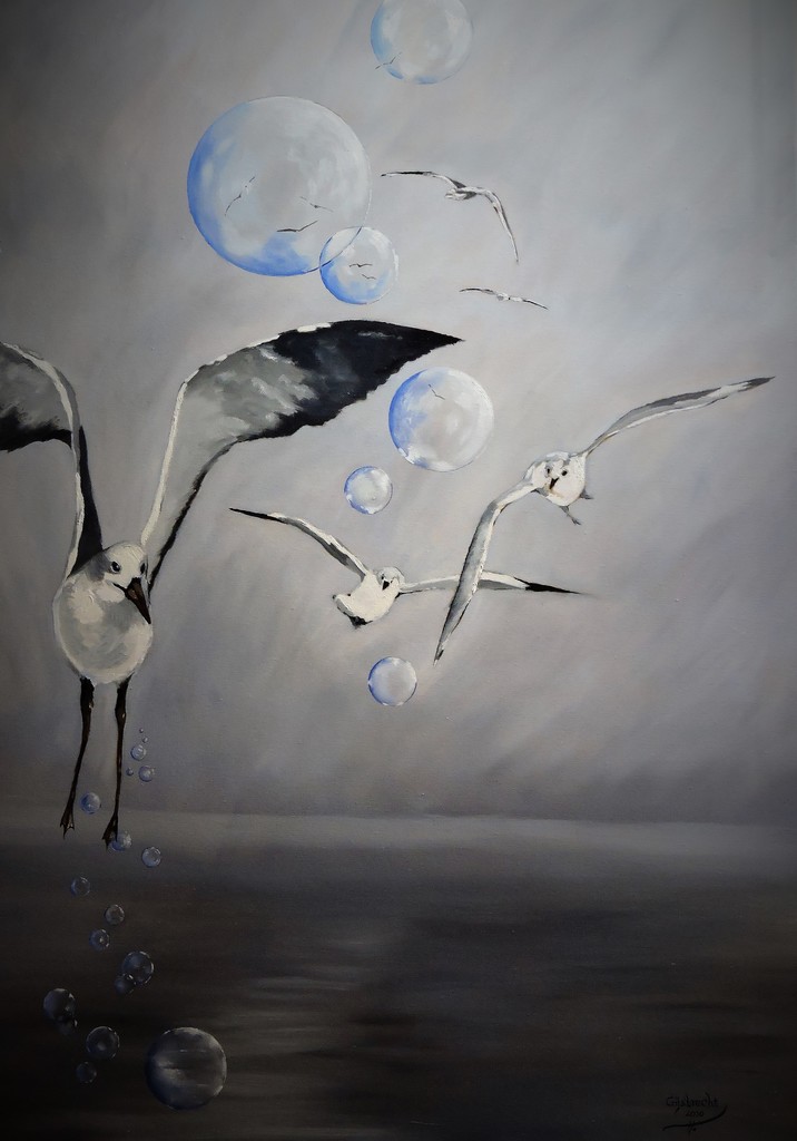 mouettes dans des bulles