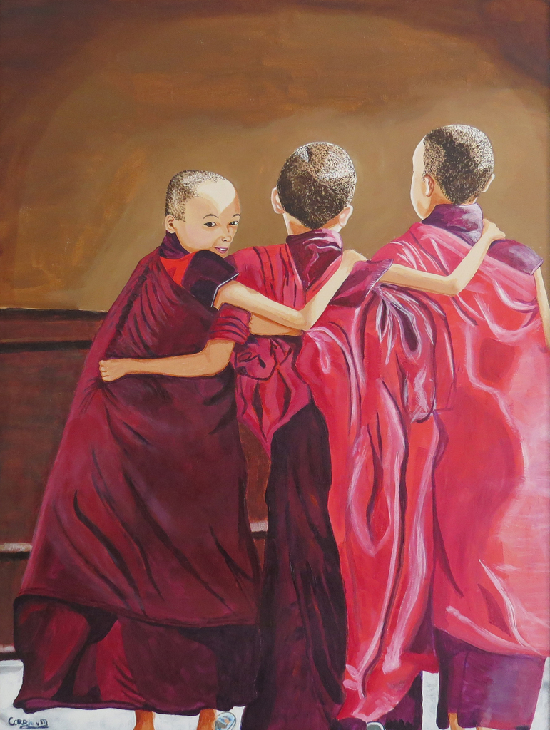 Drie Chinese monniken ingelijst