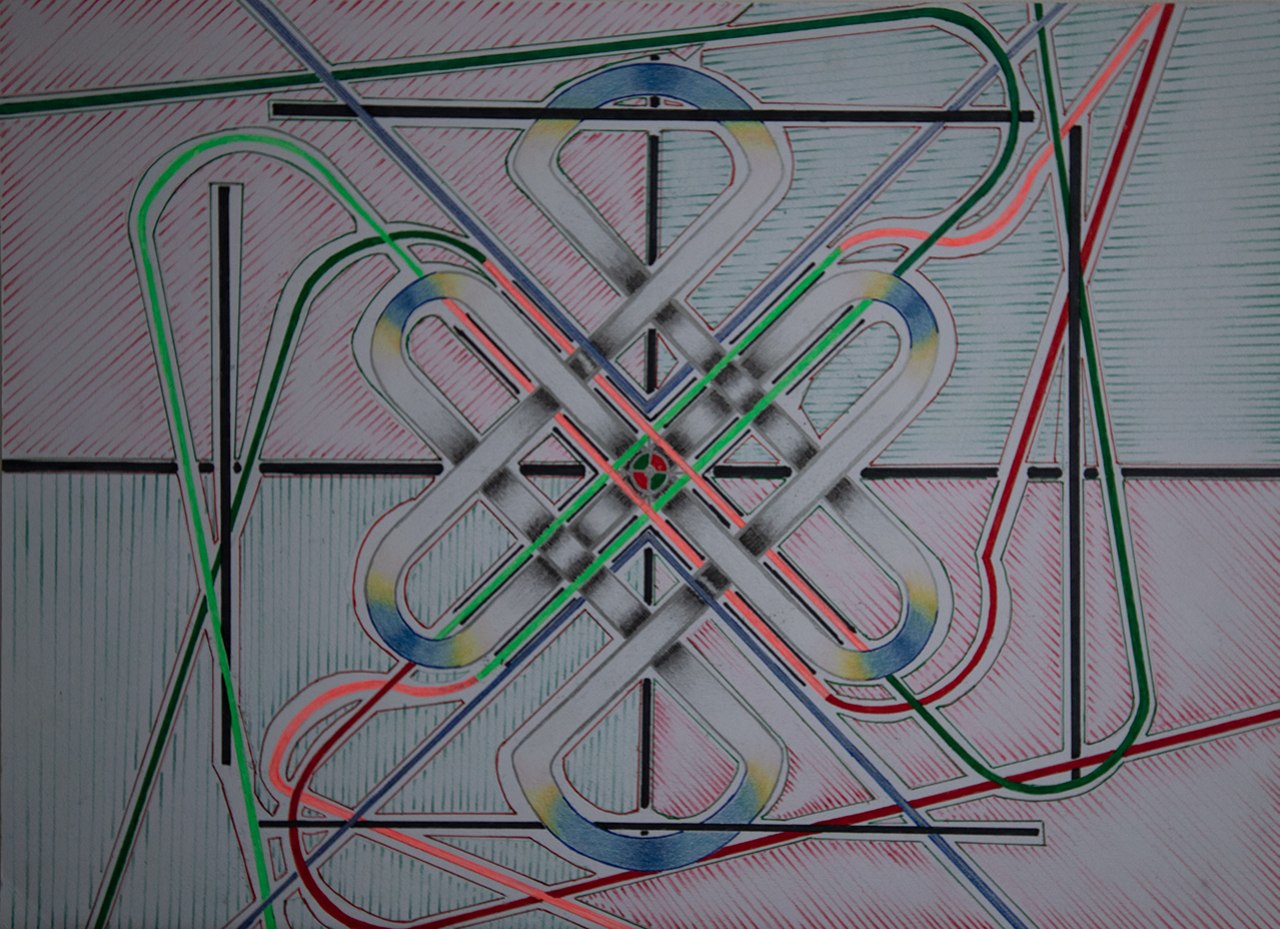 Het uitgangspunt was om een Keltische knoop te maken. Door een verkeerde meting kwamen een paar lijnen anders uit. Hierop sloeg de creatieve geest aan, waaruit dit werkje ontstond.