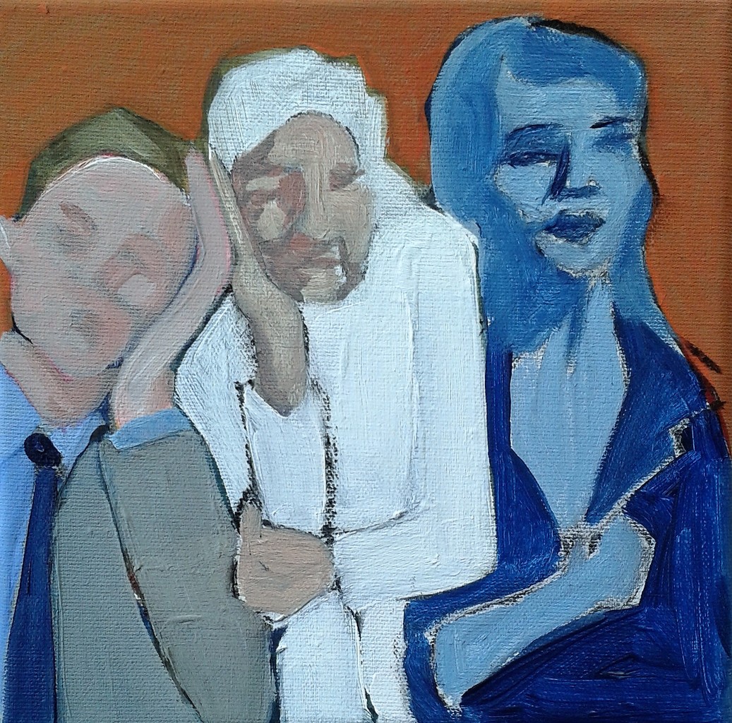 Wit Figuratief Grijs Mensen Groep Oranje Blauw Acryl Vrouw Man Doek Abstraherend Roze Houtskool Rust