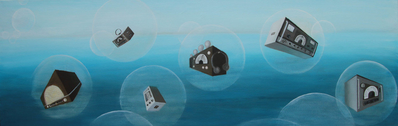 Oude radio's in een droom.