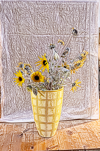 Print, aluminium Dibond, glanzend. Werk geïnspireerd op Henri Matisse, De Goudvis, 1910, Hermitage, Sint Petersburg. Roy Lichtenstein is ooit ook geïnspireerd geraakt door hetzelfde werk, hij maakte Stilleven met Goudvis. Collage begonnen in 2011, definitief in 2017. Expositie in Chaugey 2017 en Berlicum 2018.