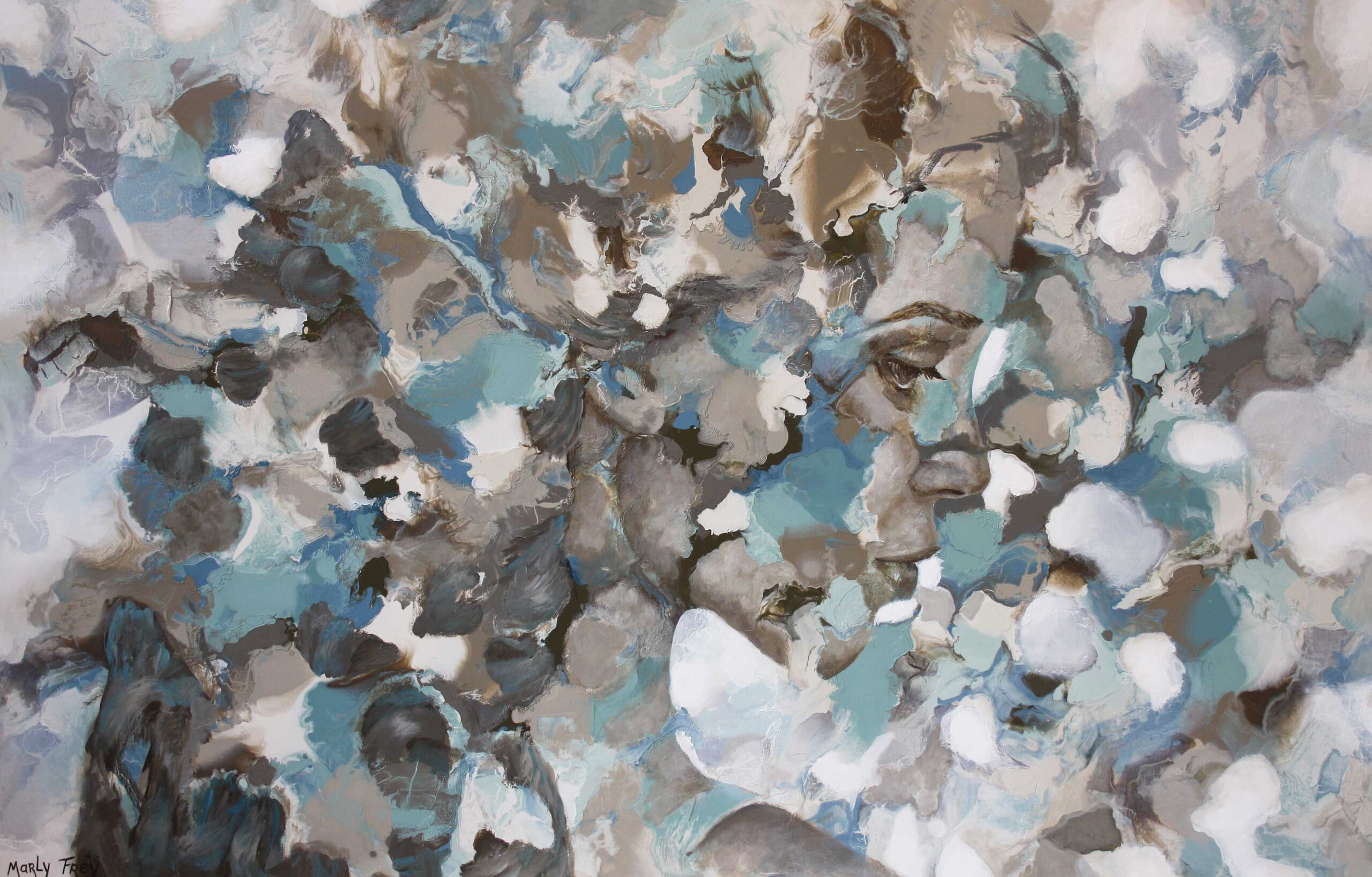 Marly Freij maakt grote kleurrijke, maar ook meer ingetogen schilderijen in gemengde techniek, met name sferische landschappen en abstracte composities