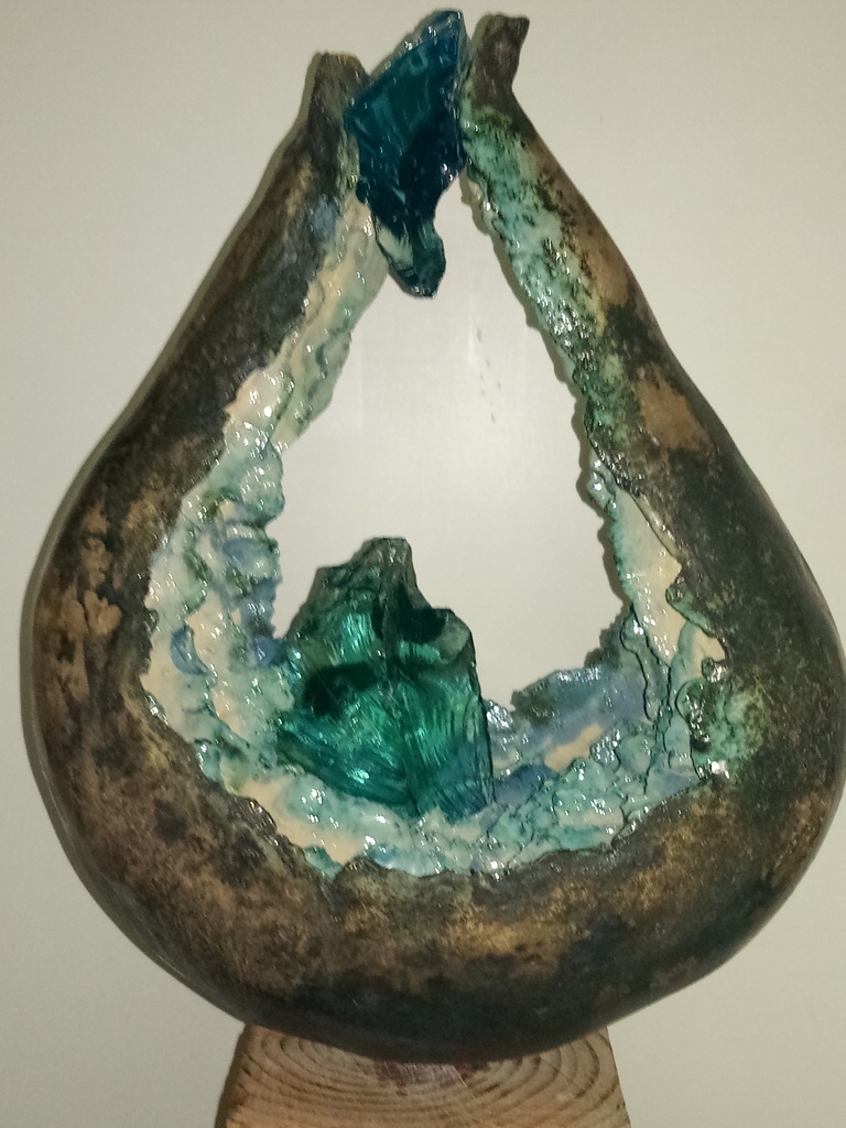 Ik maak keramische handvormen vaak gecombineerd met andere materialen.