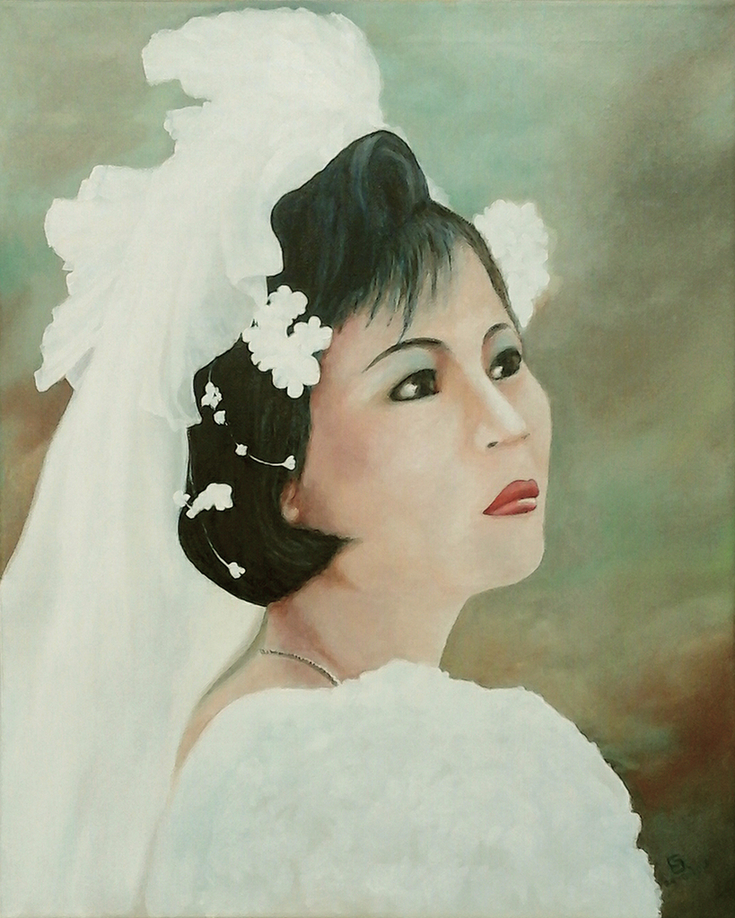 Een mooi bruidje. Ik moest haar (van mijzelf) schilderen.
