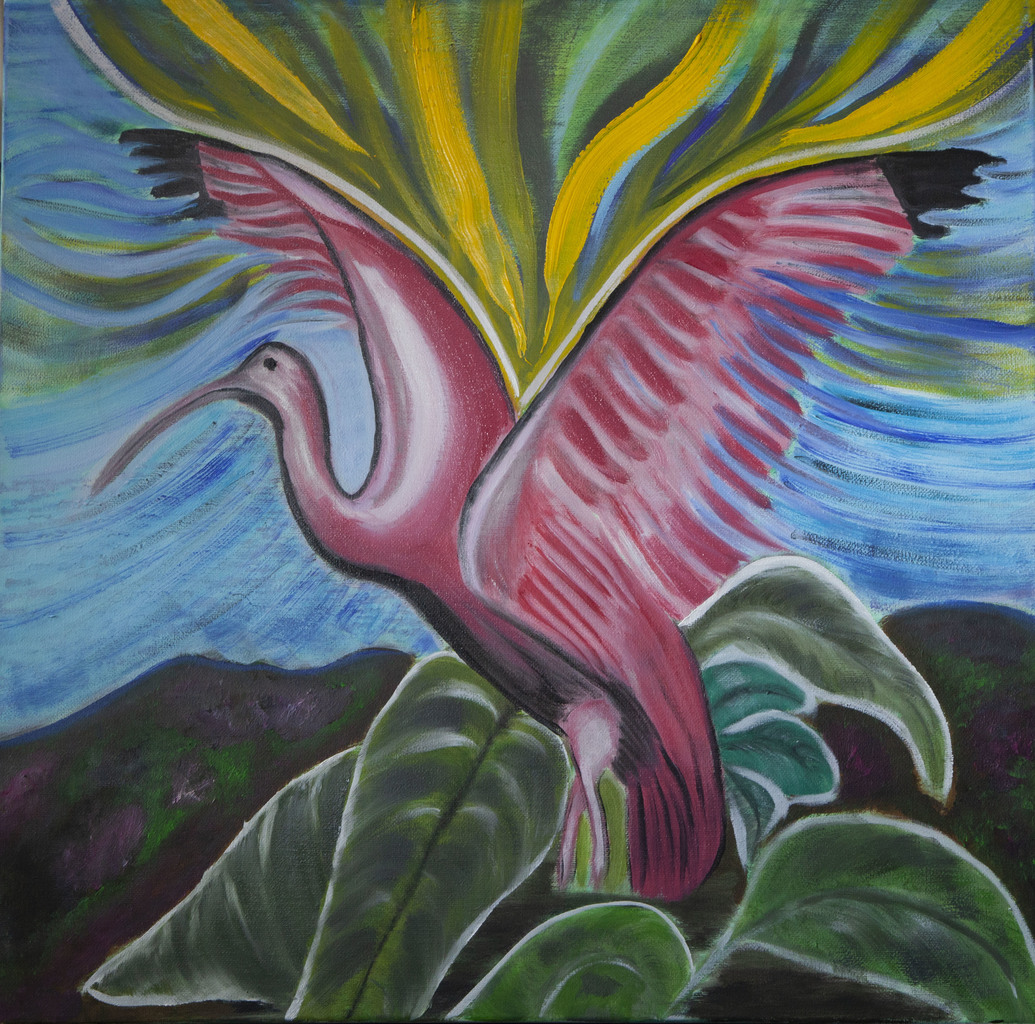 Dit schilderij is gemaakt na het zien van een natuurdocumentaire. Het is een indrukwekkende sierlijke vogelsoort en wilde deze vereeuwigen op doek.