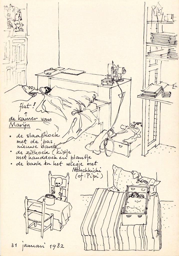 Op haar kamer kom je als bezoeker veel poppendingetjes tegen.