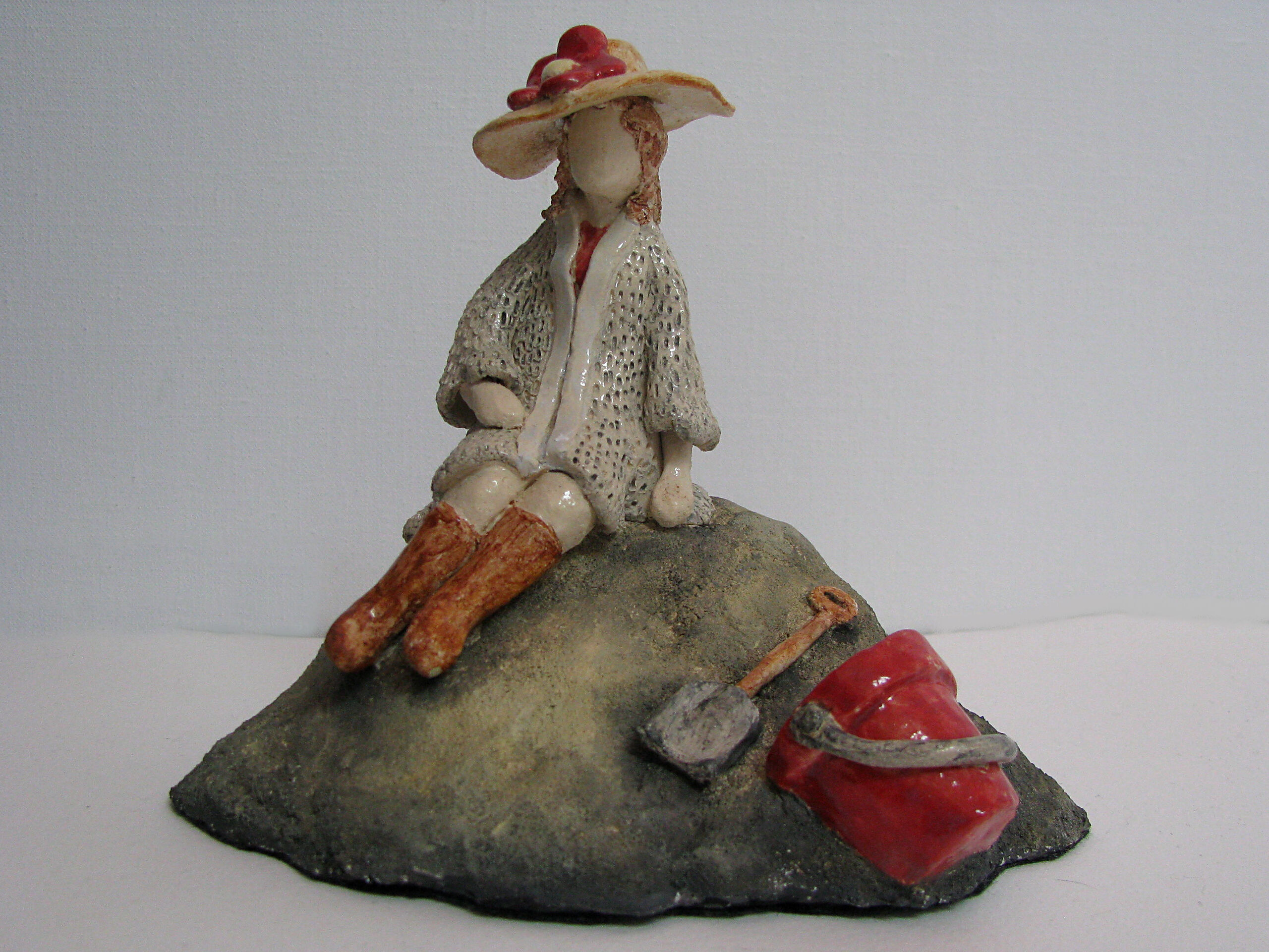 Rood Geel Blauw Vrouw Beeld Keramiek Zand Schilderen Schep Schilder Glazuren Schilder-hermanus Poëtisch-realisme Riann