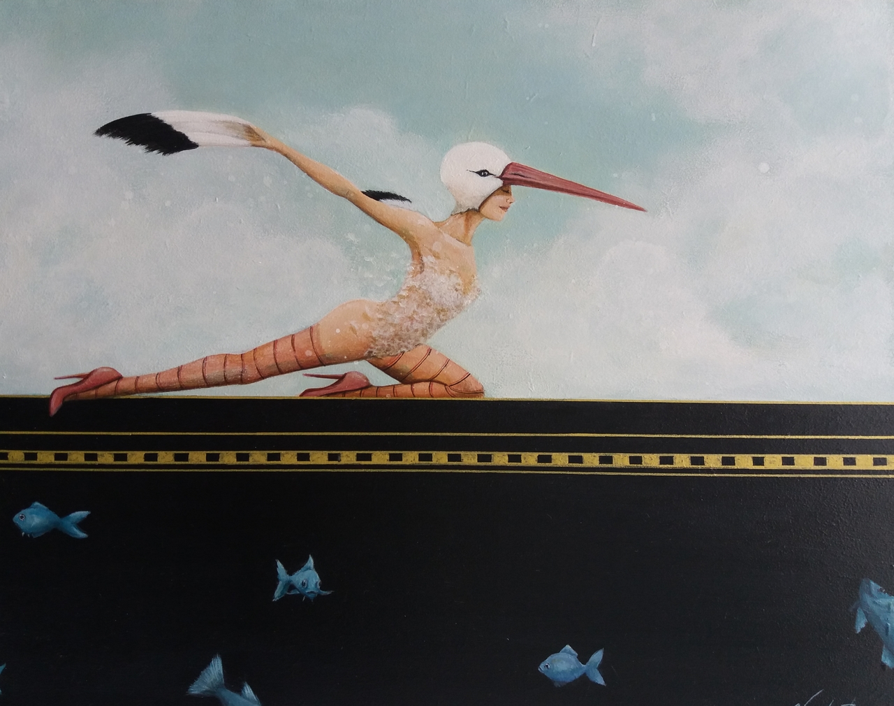 Vogel Wolken Surrealisme Clouds Bird Vissen Ooievaar Stork Surreal Fish Surrealism Birdwoman Popsurrealisme Vogelvrouw