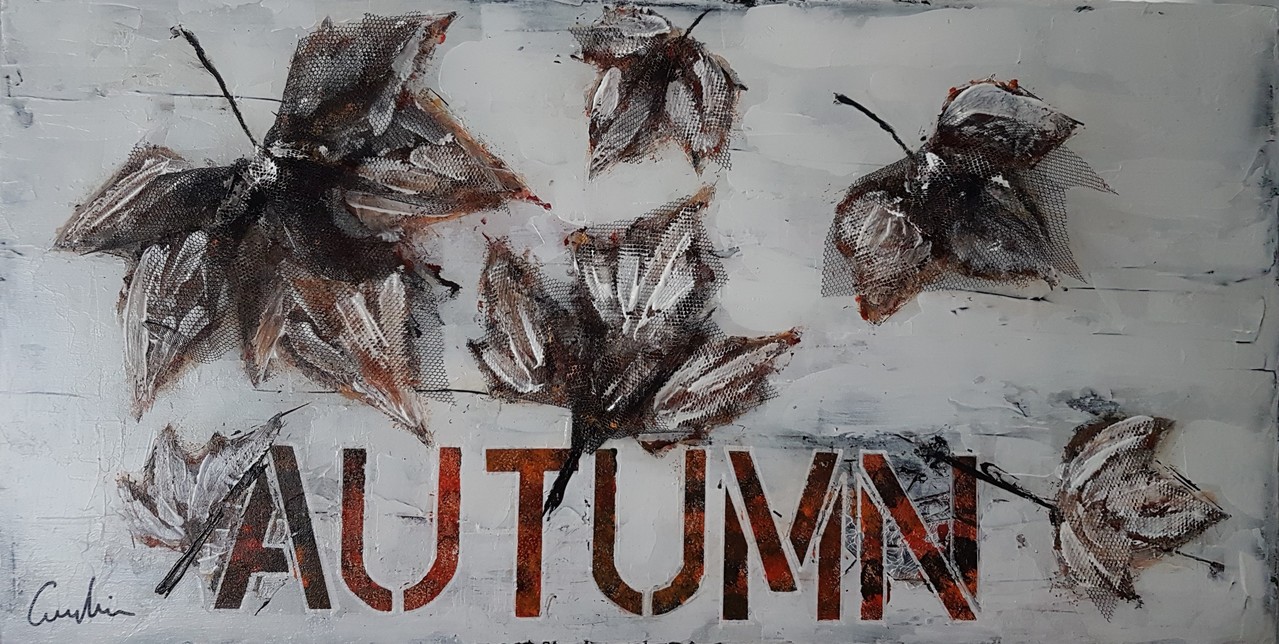 Herfst Bladeren Bruin Oranje Wit Mixed Media