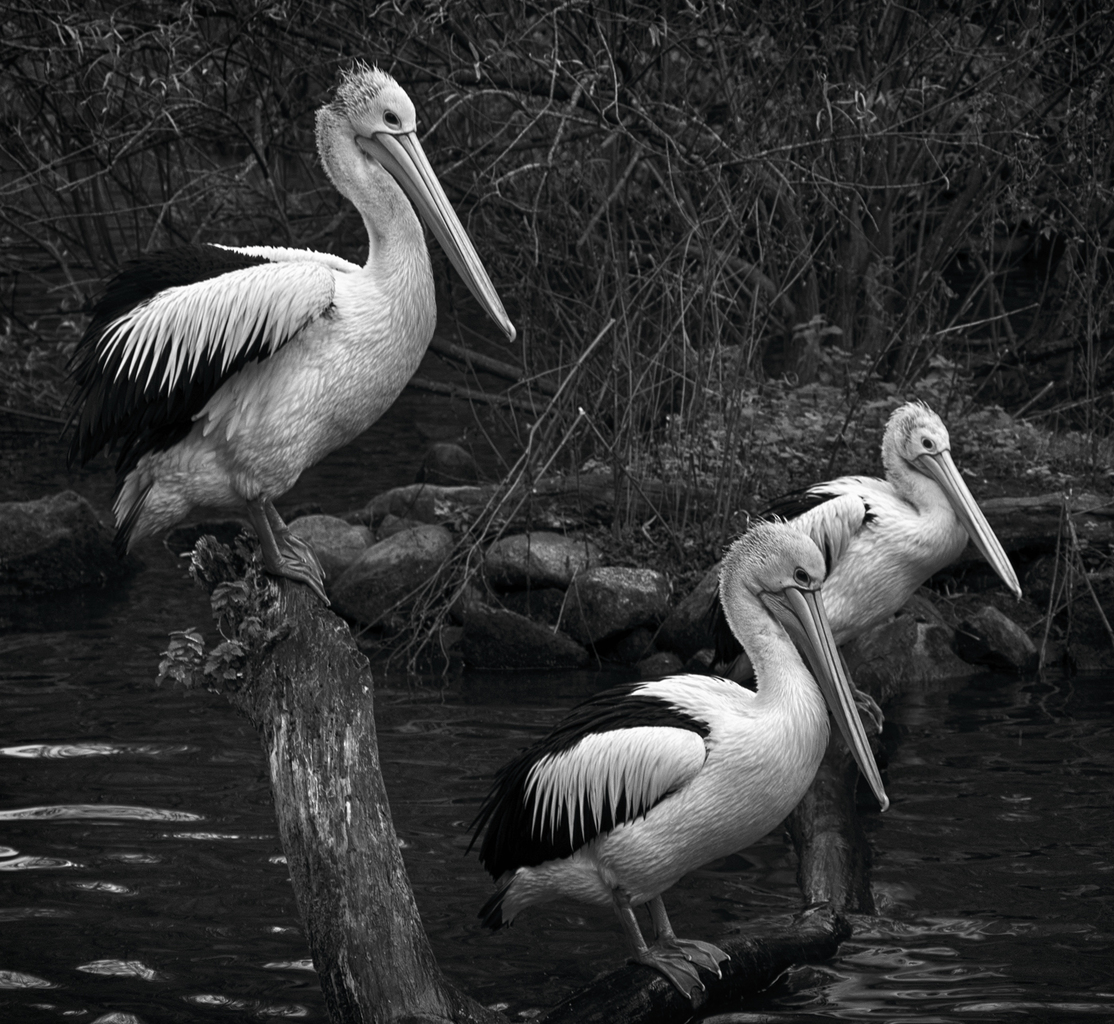Drie Vogels Duitsland Pelikanen Zwartwitfotografie Vogelfotografie Walsrode