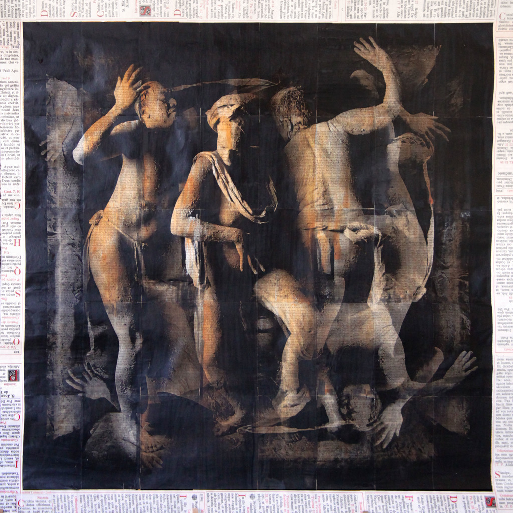 Geprint op, en samengesteld uit papier van een oude bijbel.