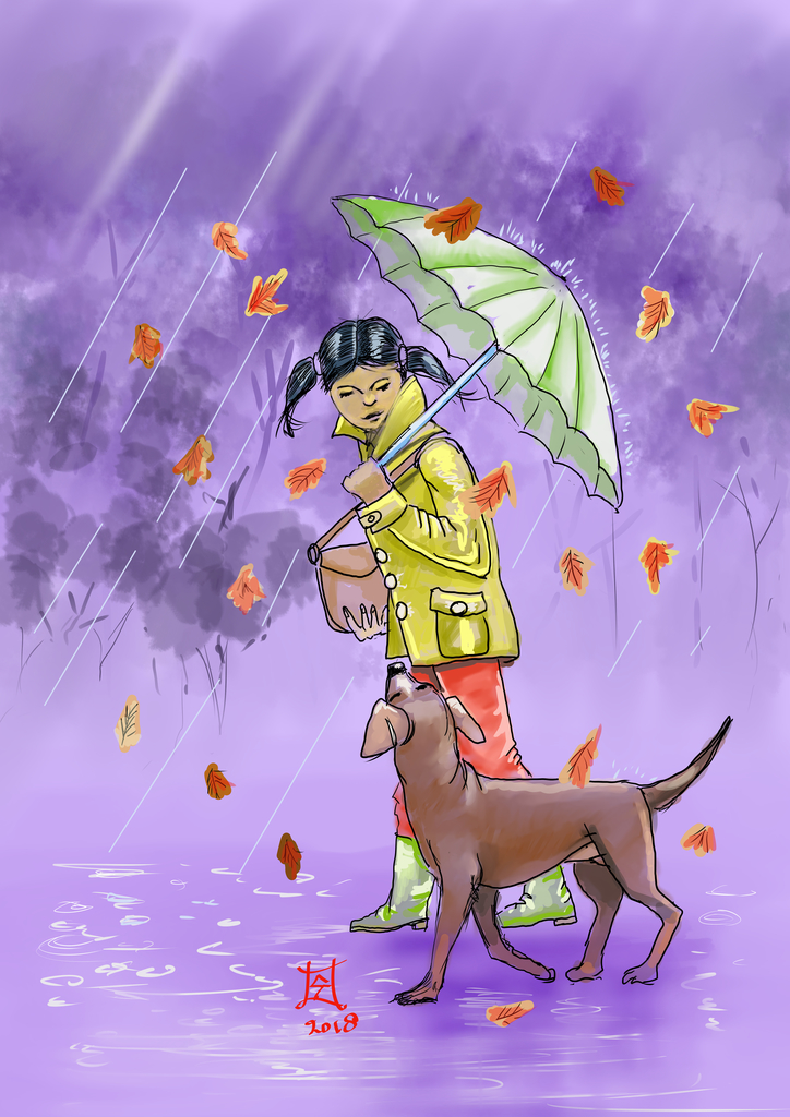 In de regen