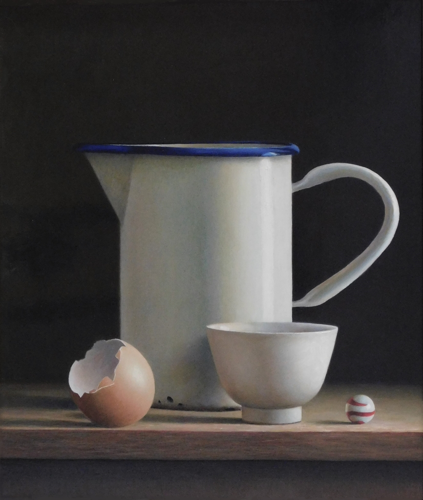 Stilleven met kannetje,kommetje en ei.