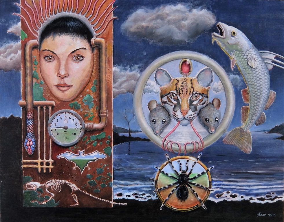 Hans den Haan maakt realistisch en surrealistisch werk in verschillende technieken in een geheel eigen stijl.