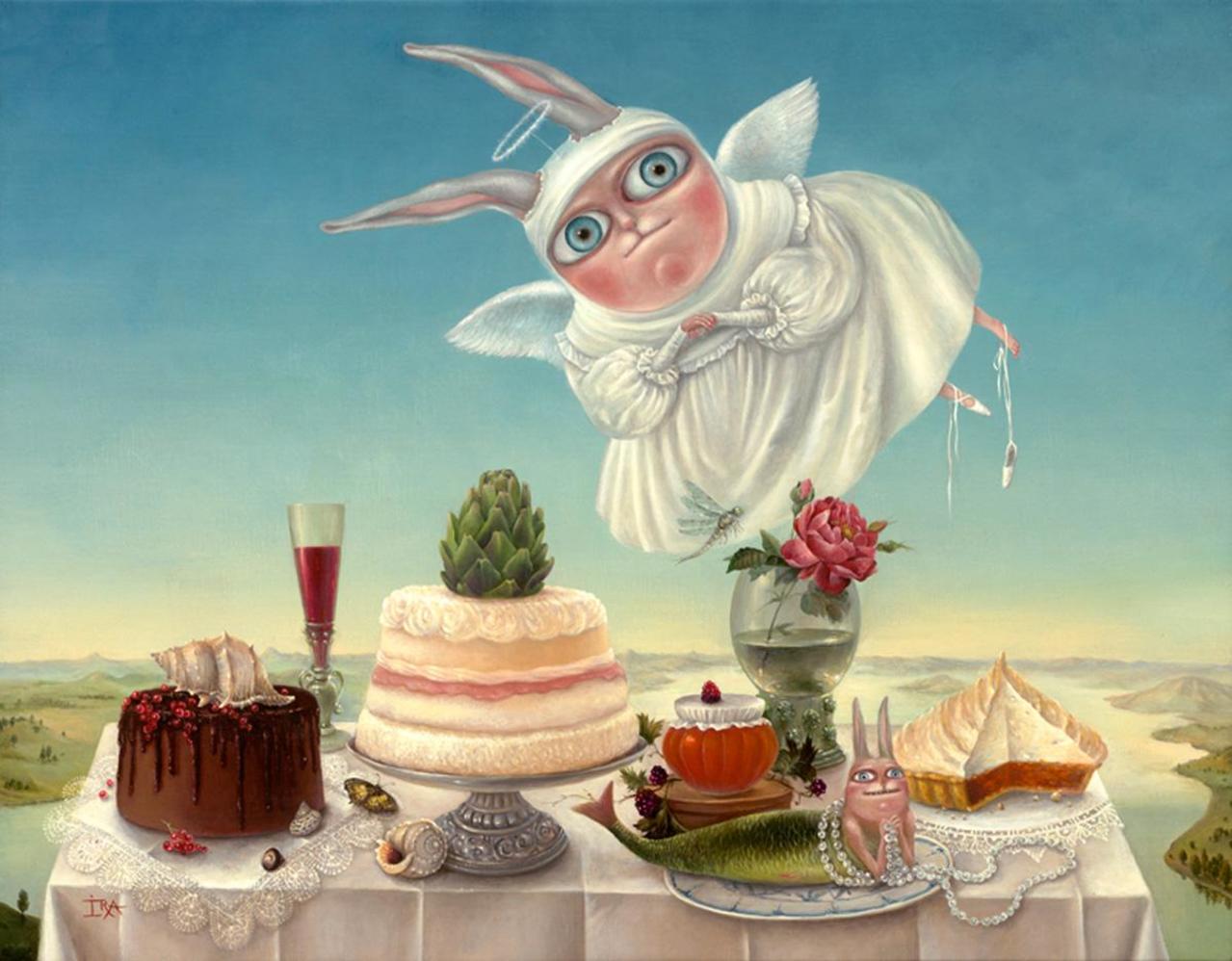 Fantasy Figurative Surreal Symbolism Blue Green Yellow White Red Pink Black Vintage Art Print Digital Reproduction Giclee Limited Edition Emotional Animal Bird Colorful Canvas Allegorical