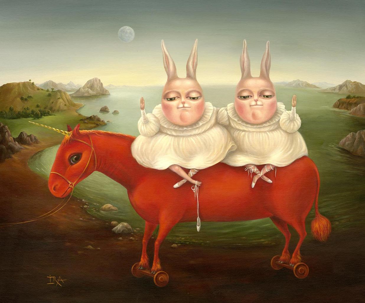 Blue Green Yellow White Red Pink Black Vintage Art Print Digital Reproduction Giclee Limited Edition Emotional Animal Bird Colorful Canvas Allegorical For Sale Buy Online