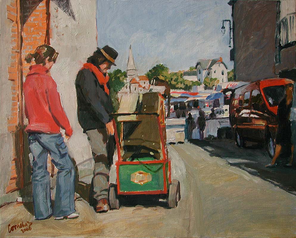 Olie Doek Op Linnen Impressionisme Stad Impressionistisch Straatleven Stadsleven Straatorgel Orgeldraaier