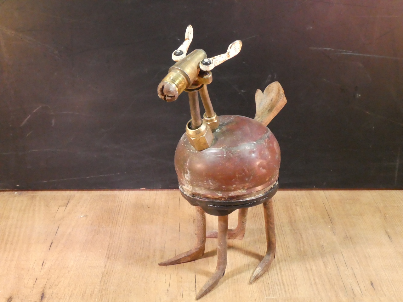 Herwtje samengesteld van diverse metalen en hout.
