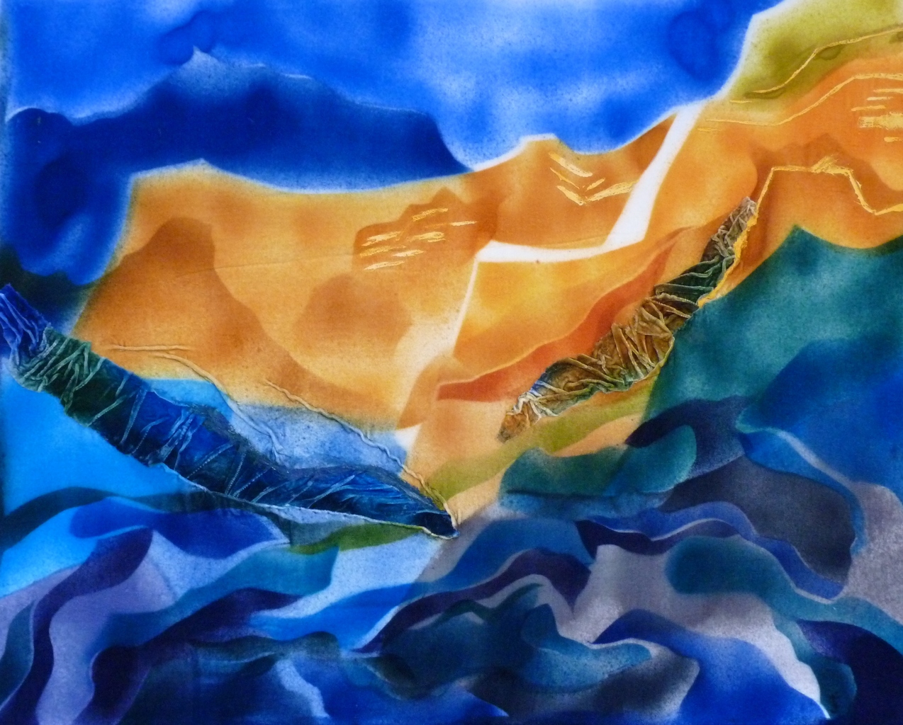 Dit schilderij is gespoten en gegeschilderd op zijdefluweel. Het is gemaakt na een reis door Midden-Amerika.