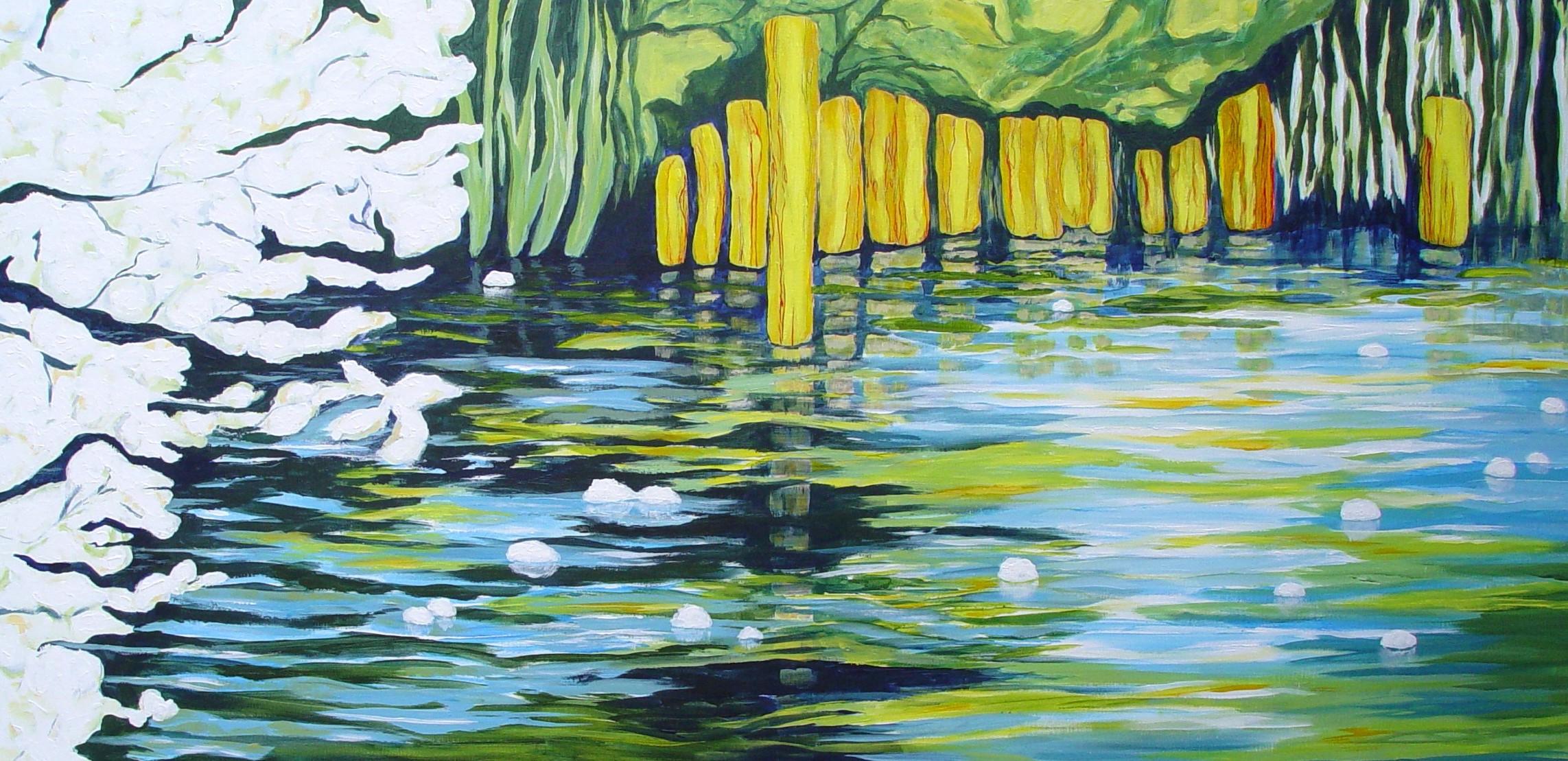 gele paaltjes in het water