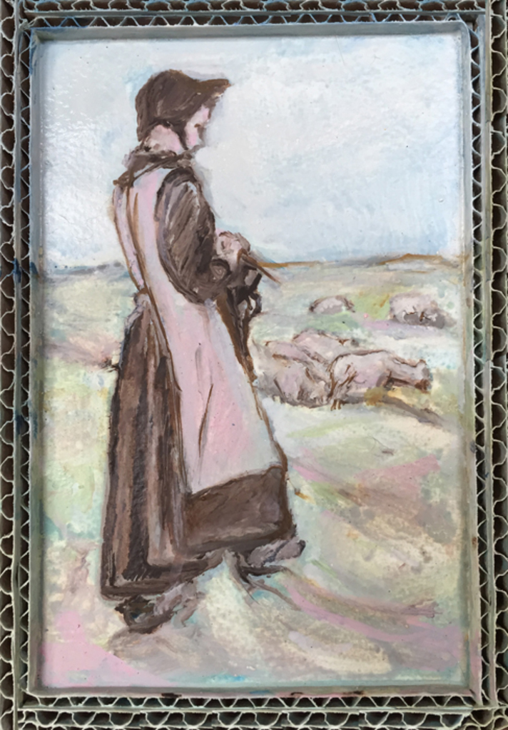 vrij naar Max Lieberman "Jonge breiende schapenhoedster 1900