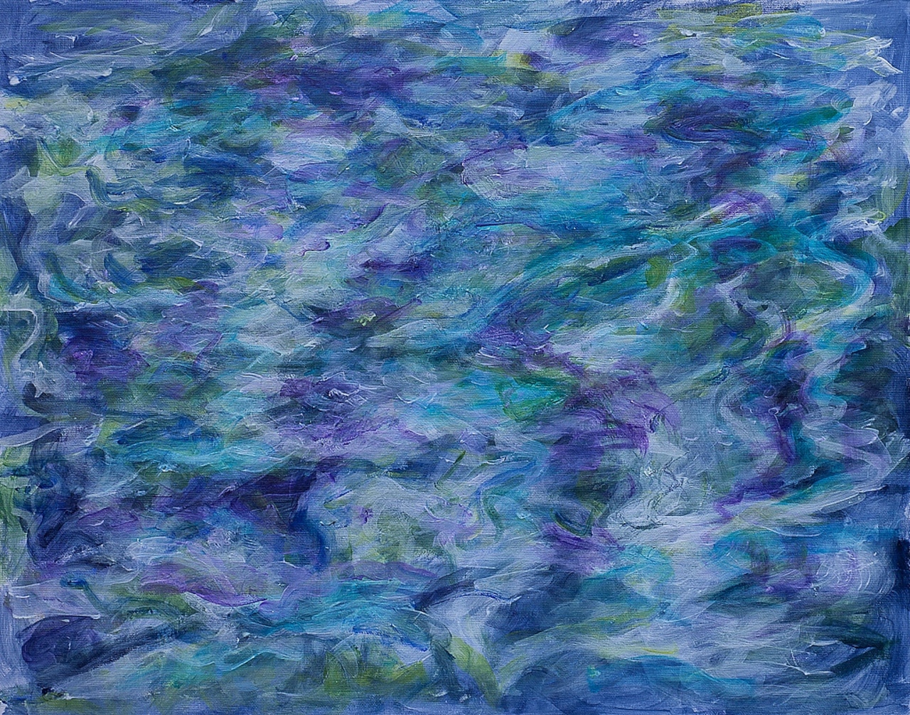 De zee, bewegend en vol kleuren. Schilderij met acrylverf geschilderd.