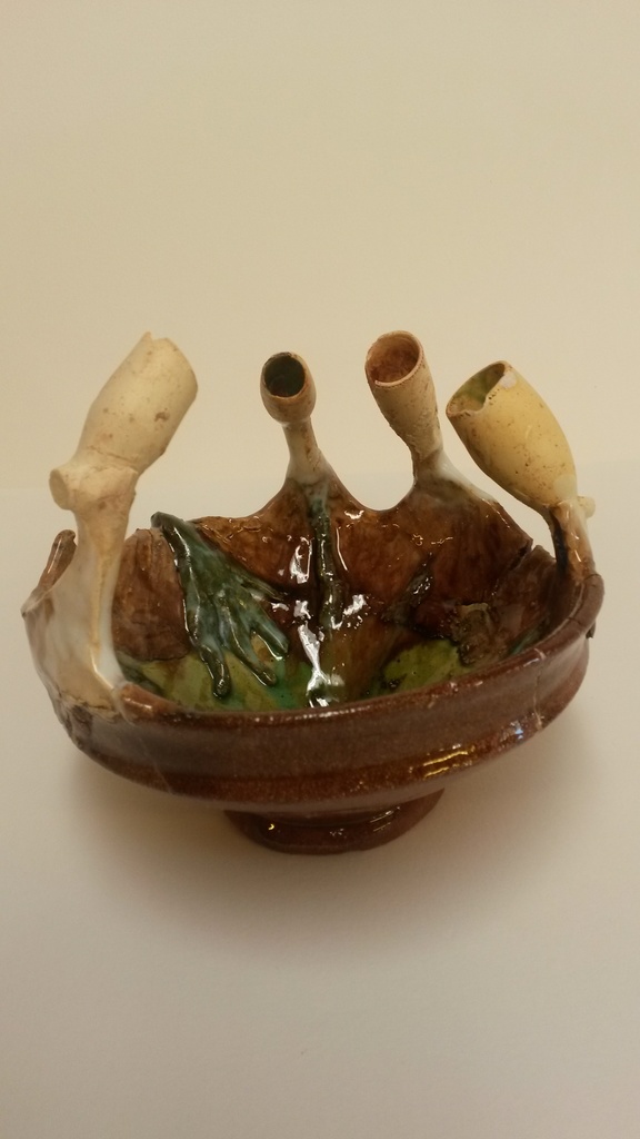 Schaaltje Keramiek Lyrisch Abstract Groen Met Bruin En Wit