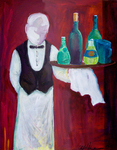 Caroline d'Hollosy schildert vrolijke schilderijen, van gedekte tafels in weelderige tuinen, met springende stoeltjes en spartelende vissen. Felle kleuren, mooie composities en humor spatten van het doek.