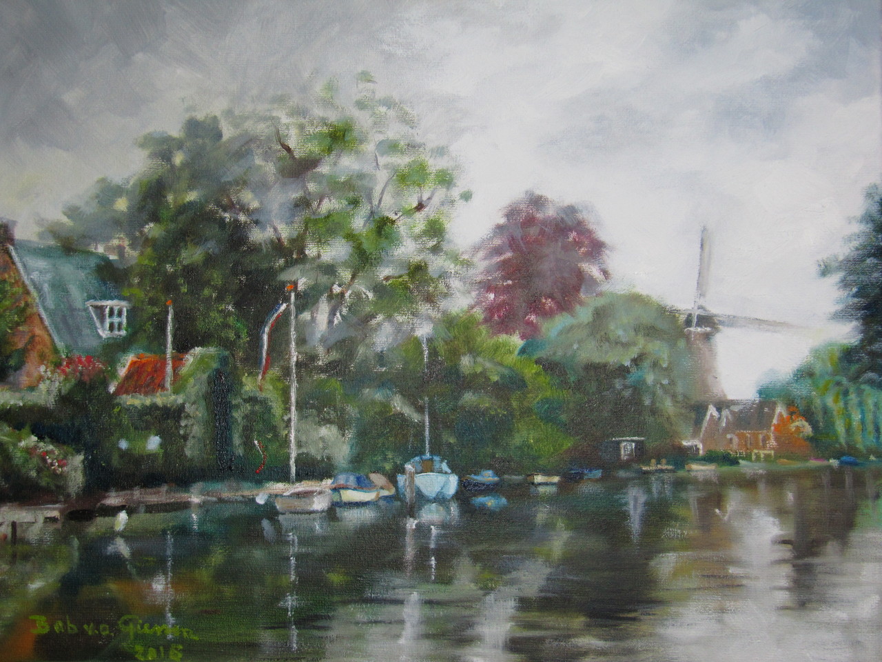 na pensionering en met enige aanleg voor tekenen, 7 jaar geleden schilderles genomen. Schilder vooral realistisch mn.water, luchten en landschappen.