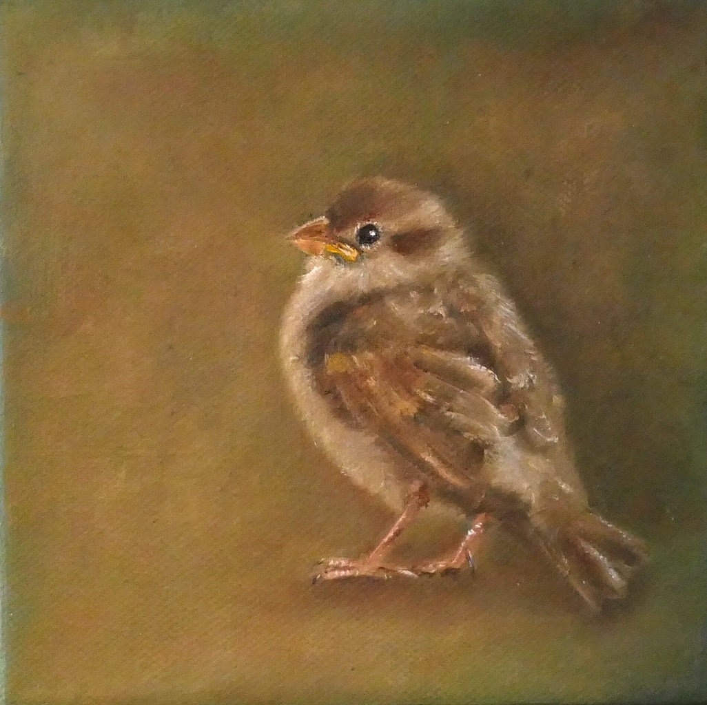Mus Sparrow Groen Green Olieverf Oilpainting