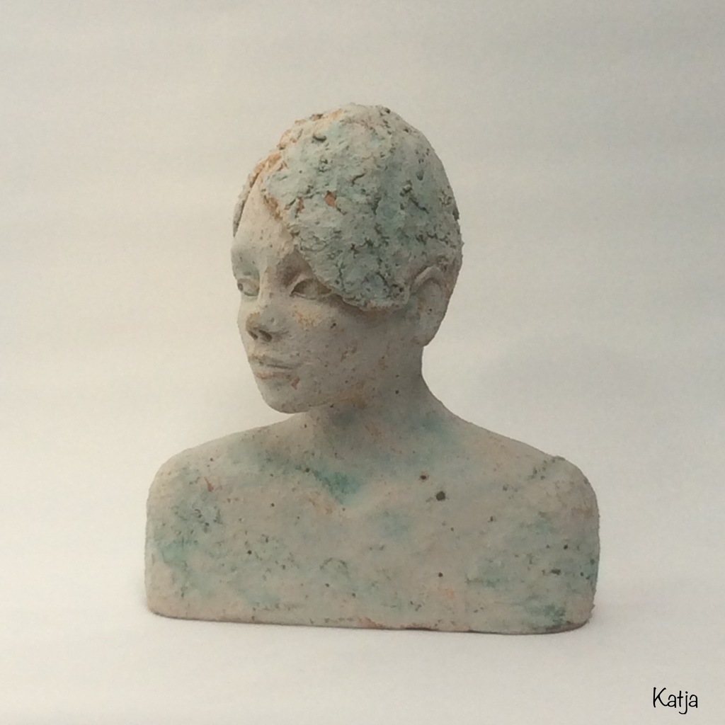 Portret n.a.v. model ,summier geglazuurd, steengoed gestookt