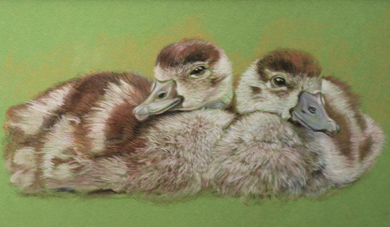 Portret Krijt Tekening Realistisch Pastel Eendjes