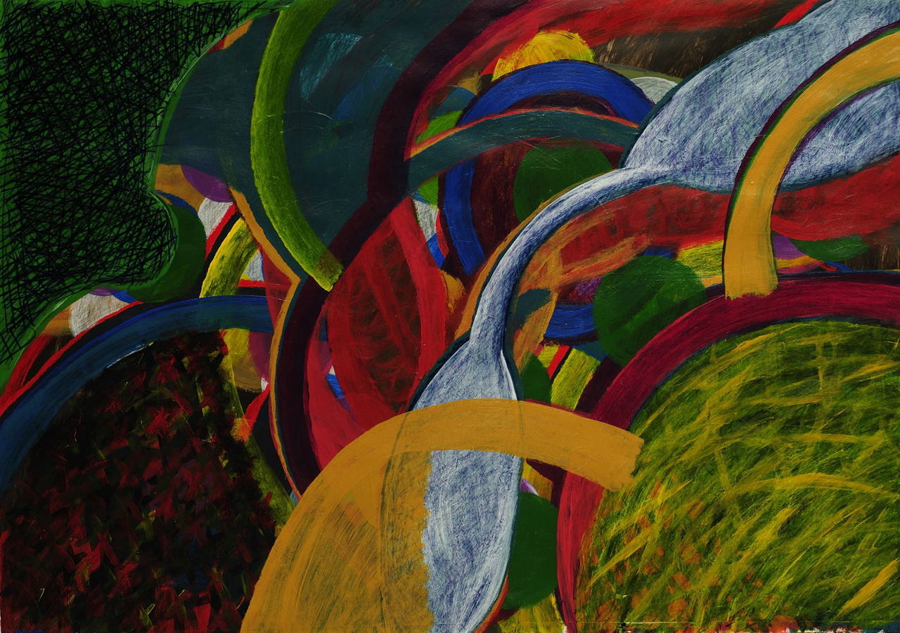 mijn schilderijen zijn gesitueerd in de stedelijke agglomeratie,met Nederland als achterliggende kracht.de overdaad aan mogelijkheden,vergezichten,architectuur en sferen probeer ik samen te vatten.deze stedelijke explosie breng ik in kaart door middel van abstracte landschappen,die ik een mystieke gelaagdheid geef als ware dat alles wat zich hier manifesteert op aarde een blauwdruk is van boven.