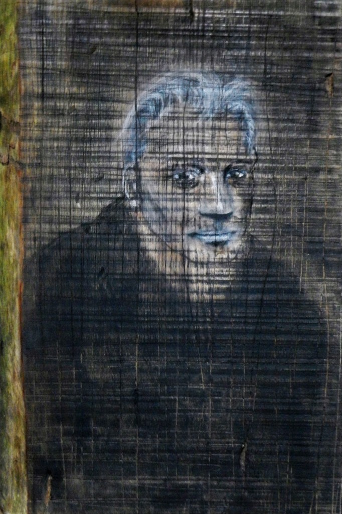 Houtskool en potlood op hout. In opdracht.