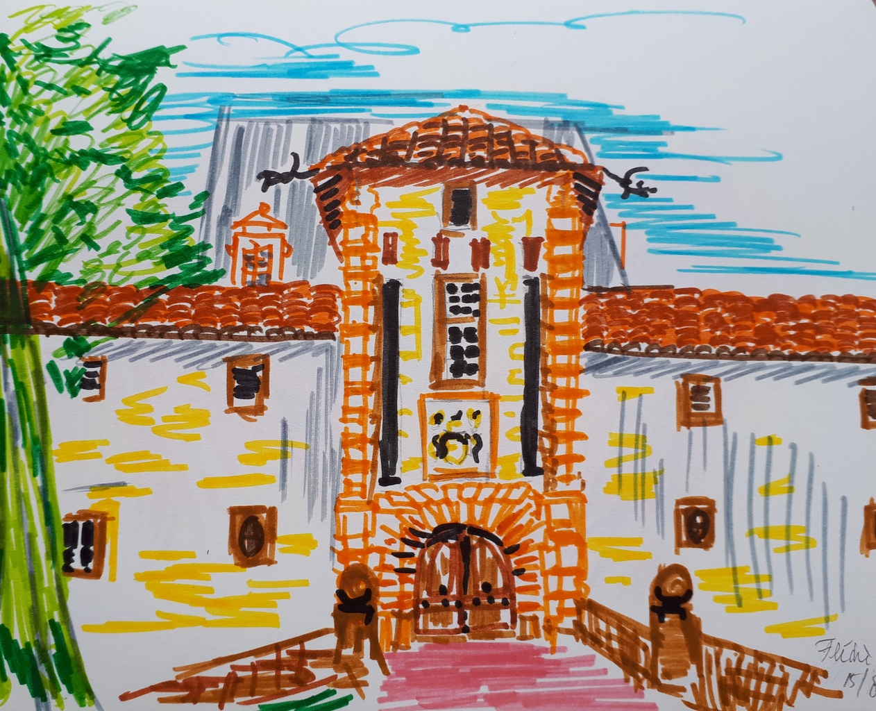 Schets van de poort van kasteel Fléchères gemaakt op 15-8-2018