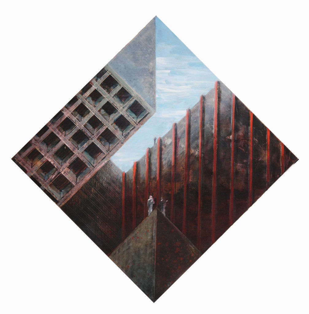 is eveneens op basis van simpele afspraken waarbinnen ik eenvoudige composities ontwikkel die dan d.m.v. schilderen ruimtelijk worden gemaakt.