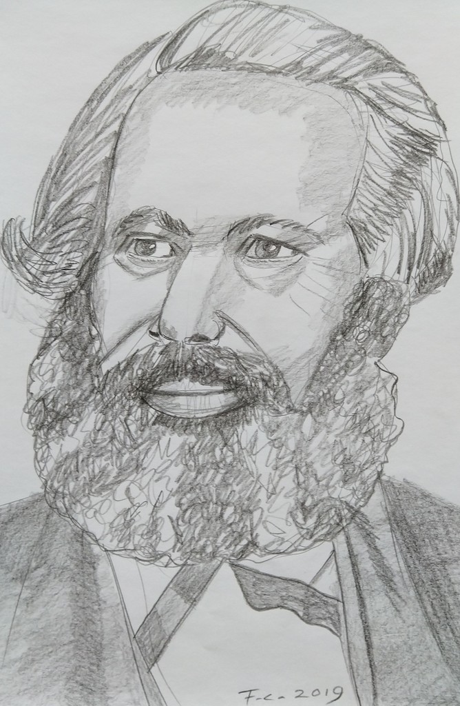 snelle schets van Karl Marx (1818-1883) o.a. filosoof en medeauteur van 'het communistisch manifest' en 'das kapital'.