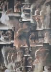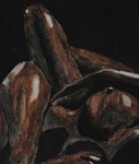 Vader en zoon in de laatste dagen dat zoon nog kon lopen. April 2001, combinatie van hout en linoleumsnede.