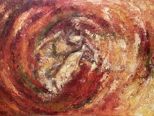 Heerlijk om een gevoel met een eigen draai aan de werkelijkheid op een abstraherende wijze op het doek te zetten.