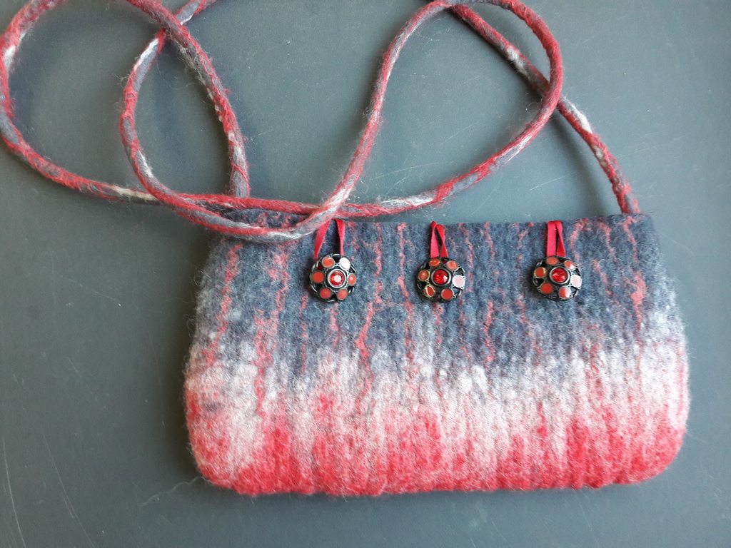 Ik ben Elise Overbeek en ik ben sinds enkele jaren aan het (nat)vilten, eerst als tegenhanger naast mijn werk, later ben ik bij verschillende mensen steeds meer cursussen gaan volgen om technisch vaardiger te worden en feeling te krijgen met het materiaal. ‘Uit je hoofd en in je handen’ voelde prima, mooie vormen creëren met prachtige kleuren en kleurcombinaties.