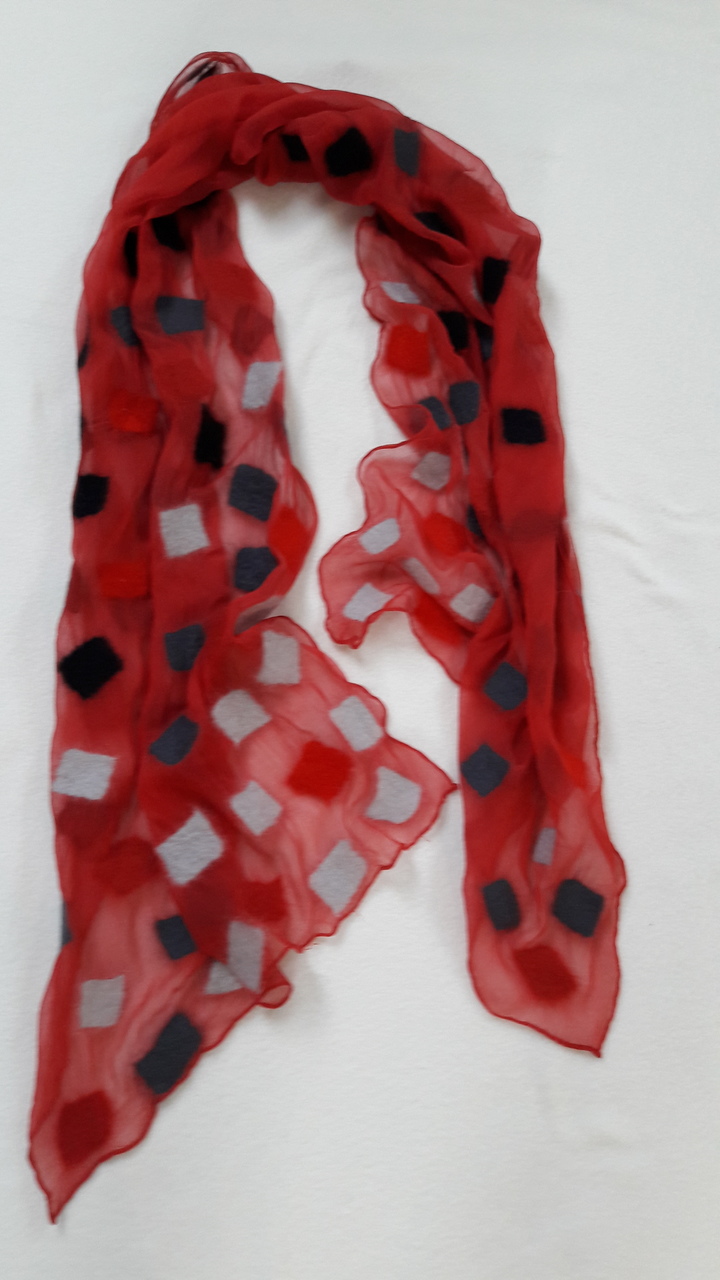 Ik ben Elise Overbeek en ik ben sinds enkele jaren aan het (nat)vilten, eerst als tegenhanger naast mijn werk, later ben ik bij verschillende mensen steeds meer cursussen gaan volgen om technisch vaardiger te worden en feeling te krijgen met het materiaal. ‘Uit je hoofd en in je handen’ voelde prima, mooie vormen creëren met prachtige kleuren en kleurcombinaties.