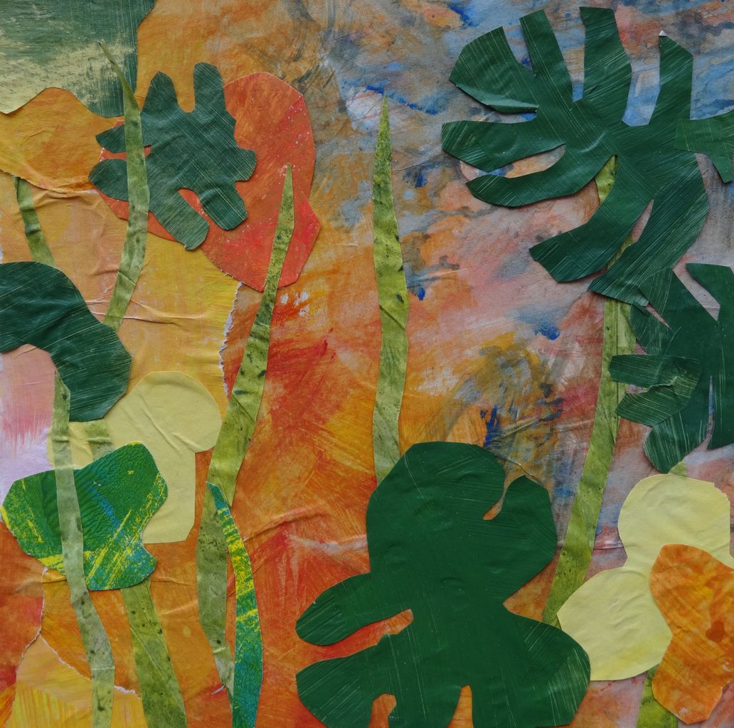 collage van beschilderd papier met plantenvormen