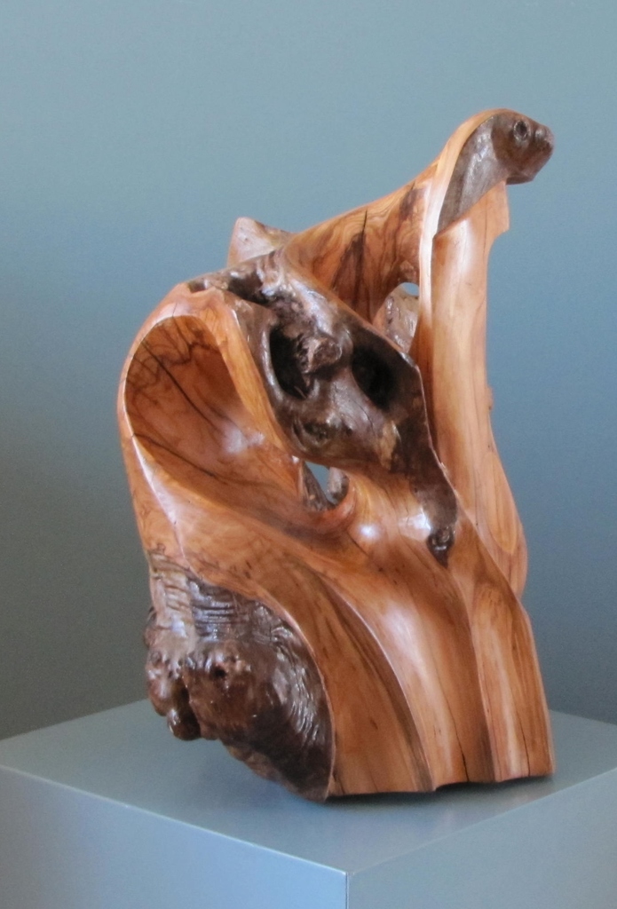 Van een olijfstronk die jaren in Frankrijk buiten heeft gelegen het verrotte hout verwijderd en de mooie vormen en structuur benadrukt