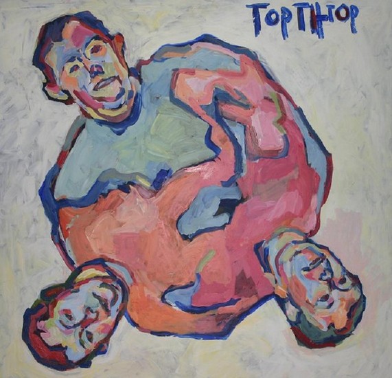 Op groot paneel geschilderd abstract maar toch figuratief schilderij. Staat nu nog in de USA maar kan ook overgescheept worden.
