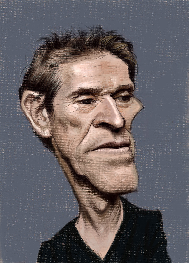 Digitaal karikatuurportret van de acteur Willem Dafoe