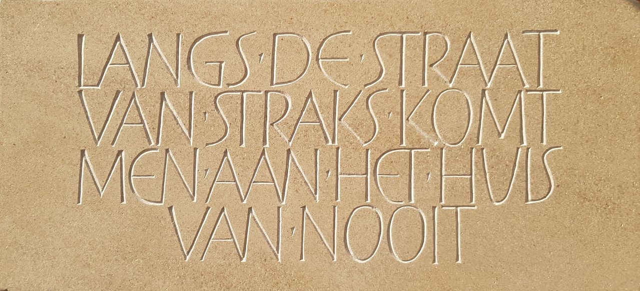 Je oefent in het letters tekenen, een ontwerp maken, een steen zoeken en er met hamer en beitel letters in kappen. Steensoort, kleur, techniek, vorm en tekst maken samen een compleet en uniek geheel. Algauw gaan de letters spreken ...